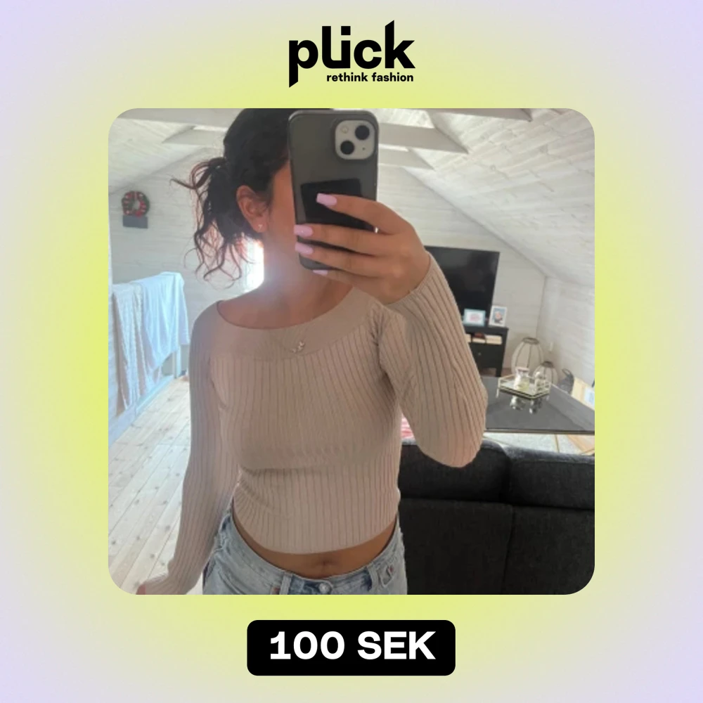 en beige tröja som är lite croppad men jätte fina detaljer vid kragen🫶🏼 dock är den är ganska tajt