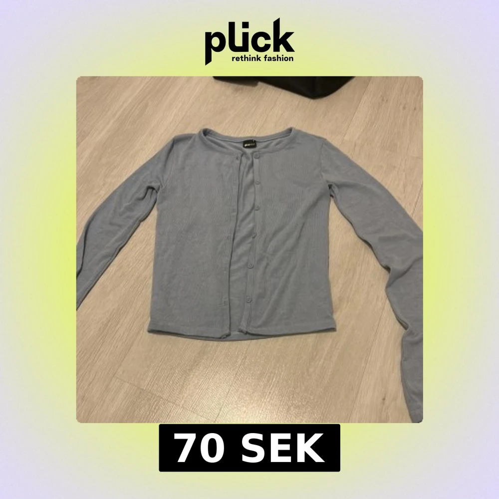 Säljer en stilren ljusblå kofta från gina tricot. Koftan har långa ärmar och knappar framtill. Perfekt för lager-på-lager under kyligare dagar.