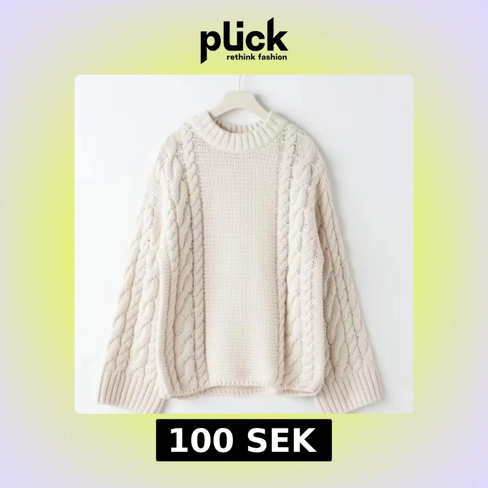 Säljer en mysig vit stickad tröja med ett snyggt flätmönster längs ärmarna och sidorna. Tröjan har en rund halsringning och långa ärmar, perfekt för kyliga dagar. Från ginatricot i storlek S, bra skick.
