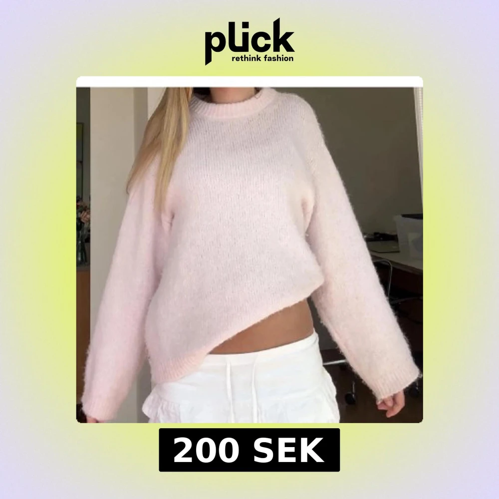 Supermjuk och fluffig ljusrosa stickad tröja med croppad passform. Tröjan har rund halsringning och långa ärmar, perfekt för att skapa en söt och avslappnad look. Passar perfekt till både jeans och kjol. Superfint skick!🌸🌸
