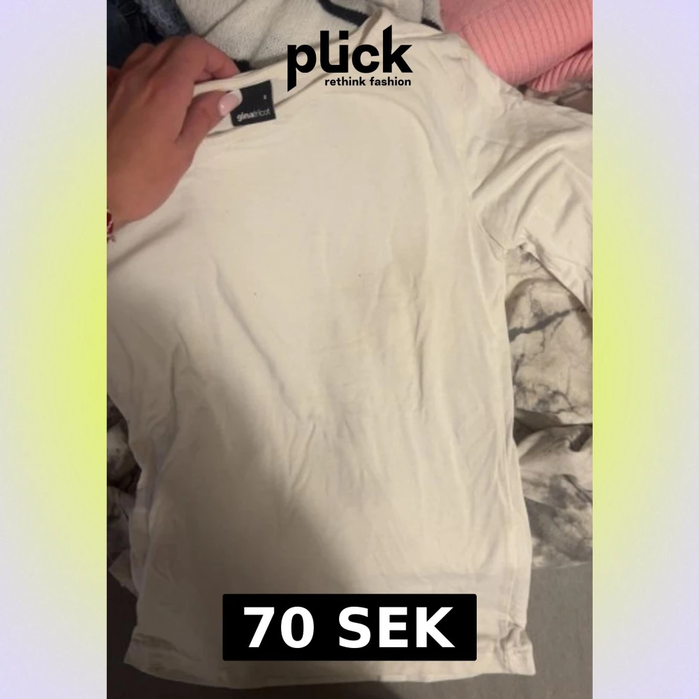 En enkel och stilren vit långärmad tröja från Gina Tricot i storlek S. Tröjan har rund hals och är gjord i mjuk bomull, perfekt för att bygga lager eller bära som den är. Passar dig som gillar clean och basic stil.