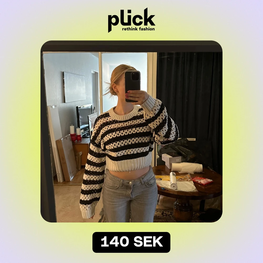 Säljer en superfin randig stickad tröja i svart och vit. Den är croppad och har en mysig, oversized passform med långa ärmar. Håller ju tyvärr inte värmen med tanke på mönstret men är helt perfekt till sena sommarkvällar
