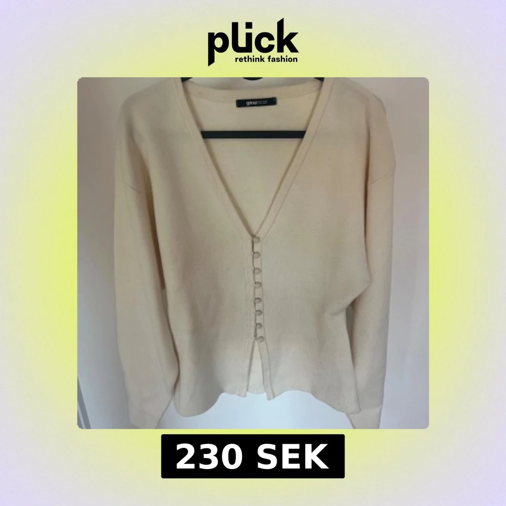 Säljer en beige kofta från Gina Tricot med v-ringning och knappar framtill. Tröjan är stickad och har långa ärmar. Perfekt att slänga på sig över en topp eller klänning. Använd fåtal gånger i storlek S🤍