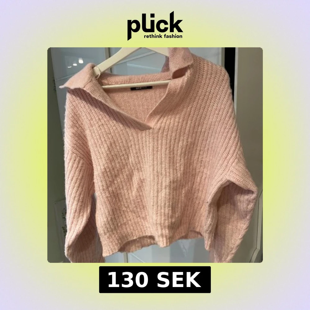 Mysig rosa stickad tröja från Gina Tricot med en bred krage och ribbad struktur. Perfekt för kyliga dagar och ger en avslappnad stil. Tröjan har långa ärmar och en bekväm passform. Nypris 299kr