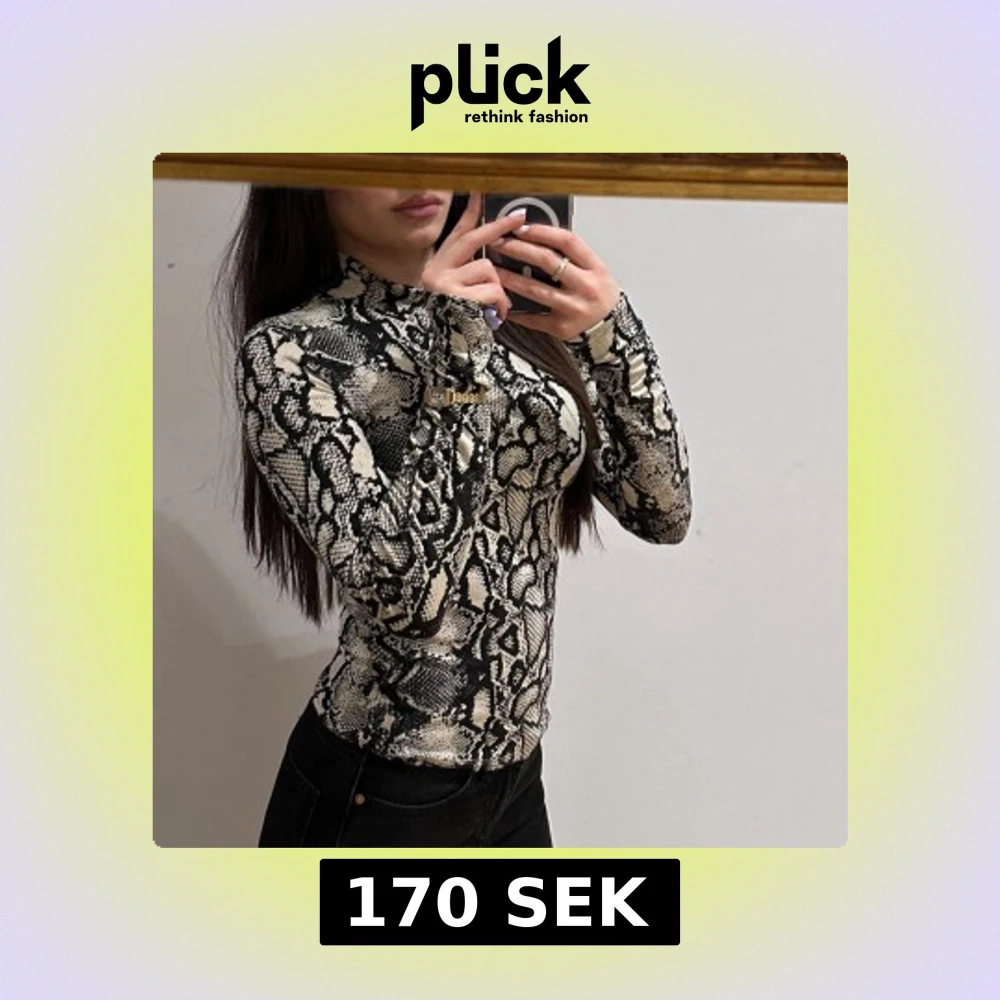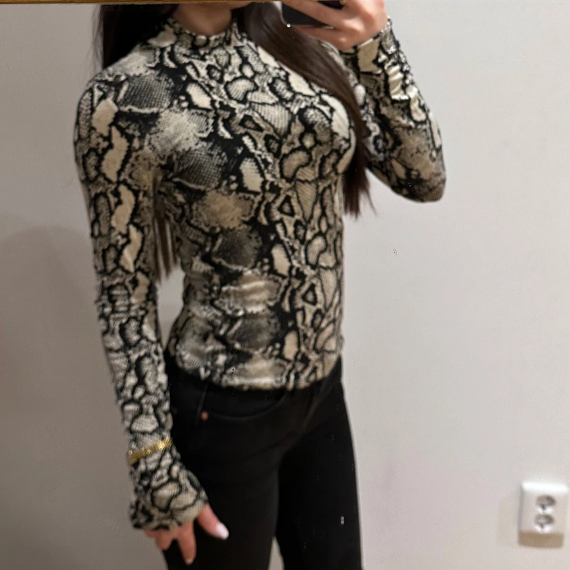 Ormmönstrad tröja från Gina Tricot i svart och beige. Tröjan har en tight passform och långa ärmar, i storlek s