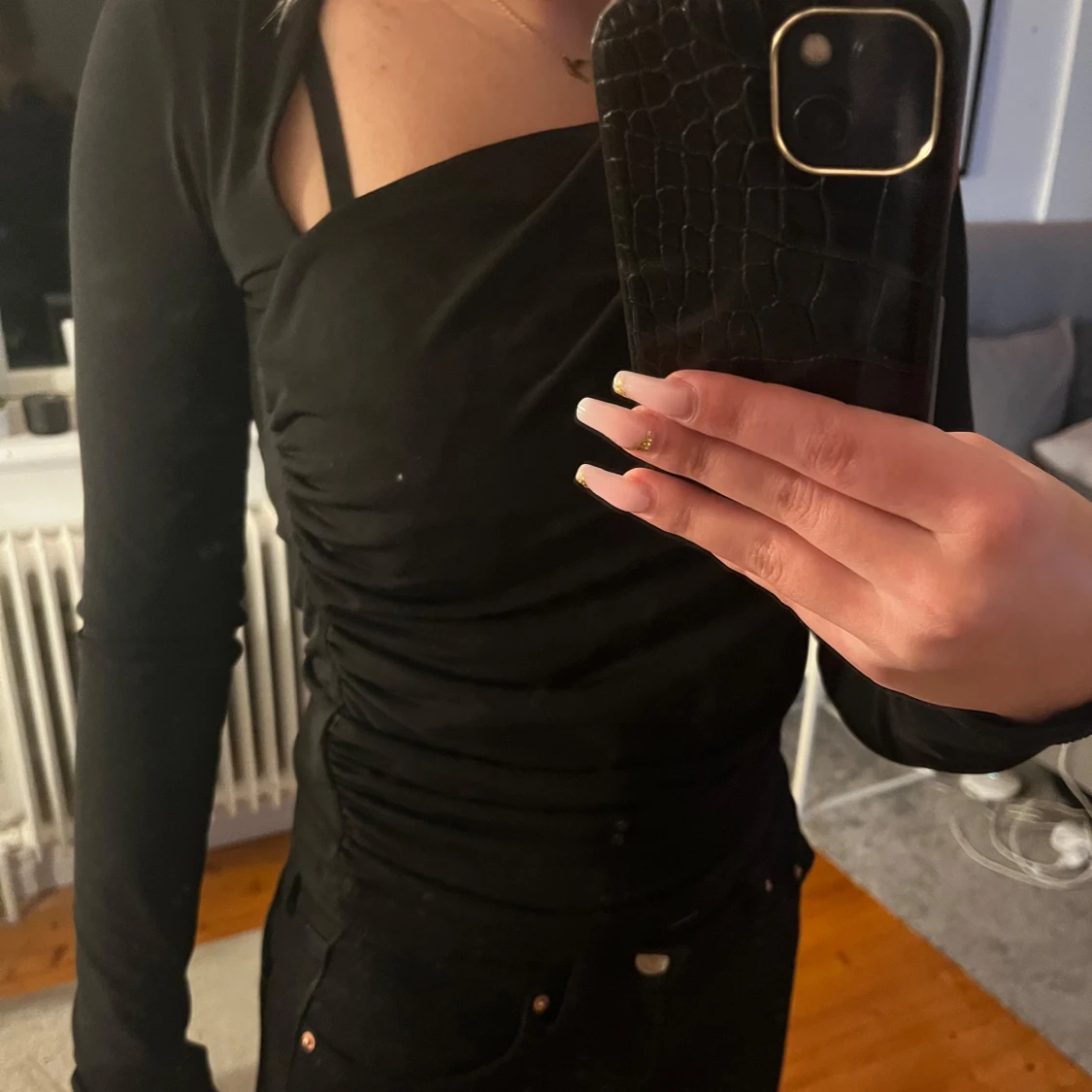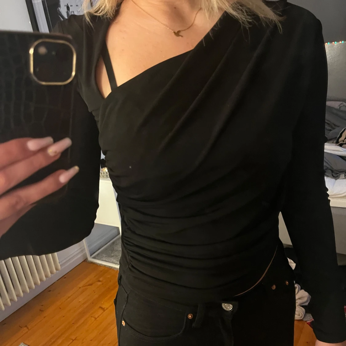 Säljer min svarta tröja från Gina med asymmetrisk halsringning, helt oanvänd💗