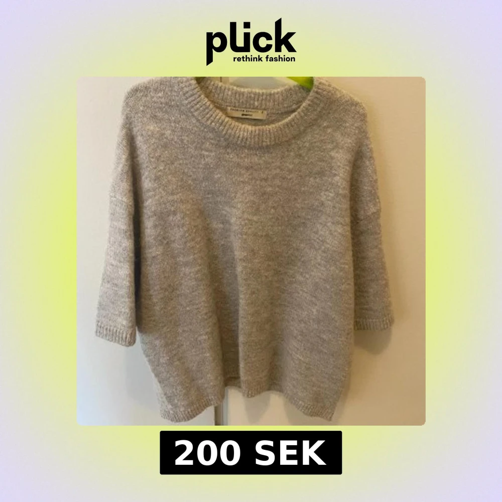 Mysig beige stickad tröja från Gina Tricot med rund halsringning och trekvartsärm. Tröjan har en avslappnad passform och ribbade muddar vid ärmslut och nederkant. Perfekt för lager-på-lager under kyliga dagar.
