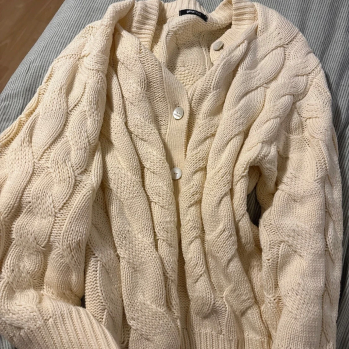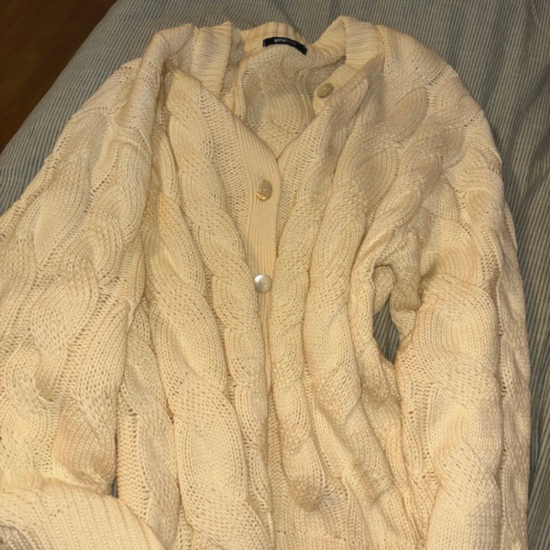 Mysig kabelstickad kofta från Gina Tricot i en ljusgul färg. Använd 2 ggr.