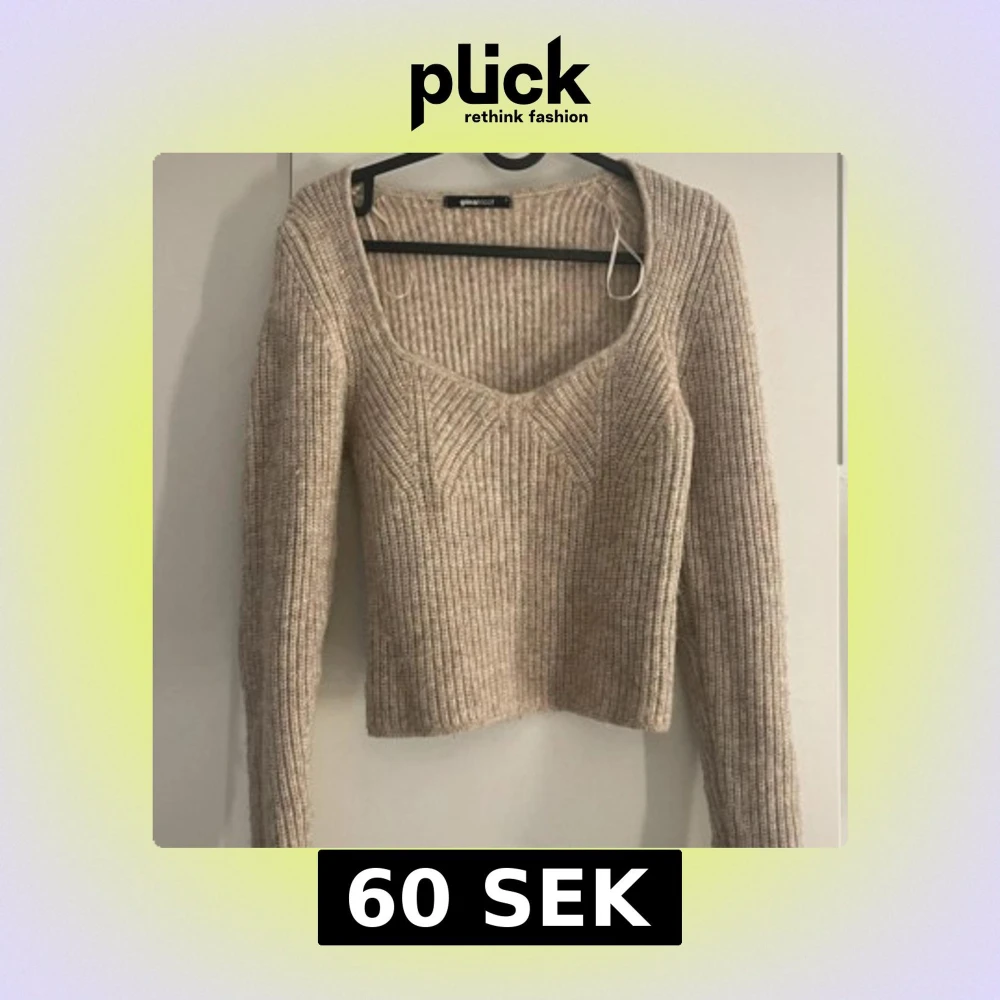 Superfin beige ribbstickad tröja från Gina Tricot med djup v-ringning och lång ärm. Tröjan är croppad och har en snygg, figurnära passform som passar perfekt till höst- och vinteroutfits. Hör av er för mer bilder ❤️