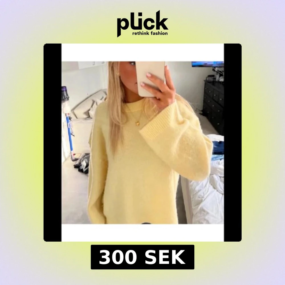 Säljer en supermjuk och mysig gul stickad tröja med rund hals och långa ärmar. Tröjan har en oversized passform och breda muddar vid ärmslut och nederkant. Perfekt för lager-på-lager och chill dagar.