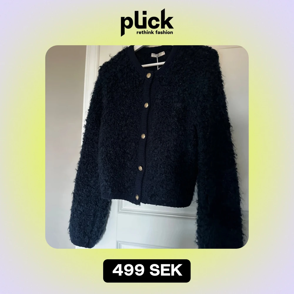 En mysig marinblå kofta/jacka med guld knappar ifrån Gina tricot i storlek S