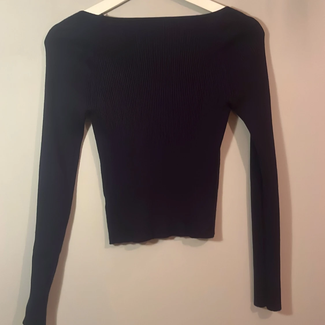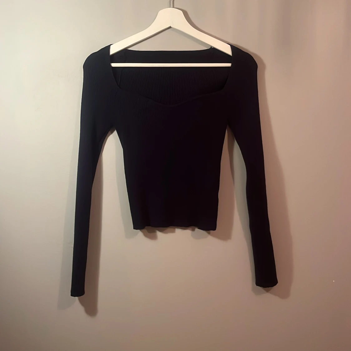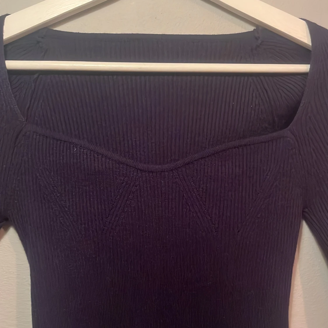 Snygg marin blå ribbad tröja med långärmad design. Perfekt för en stilren look, med en smickrande passform och enkel stil. Passar bra till både jeans och kjol.