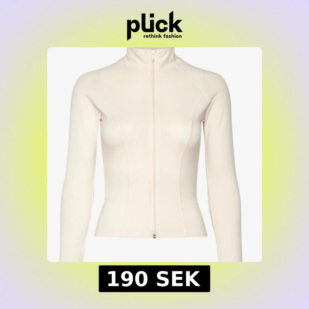 Snygg beige ziptröja med hög krage och figurnära passform. Tröjan har långa ärmar och dragkedja hela vägen framtill. Perfekt att styla med jeans eller kjol för en clean och fräsch look. aldrig använd med prislappen kvar!
