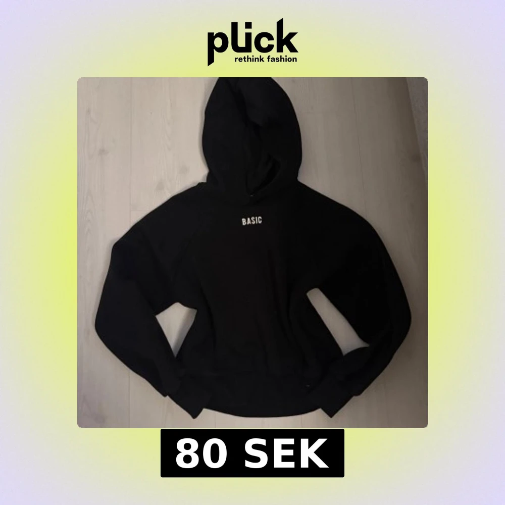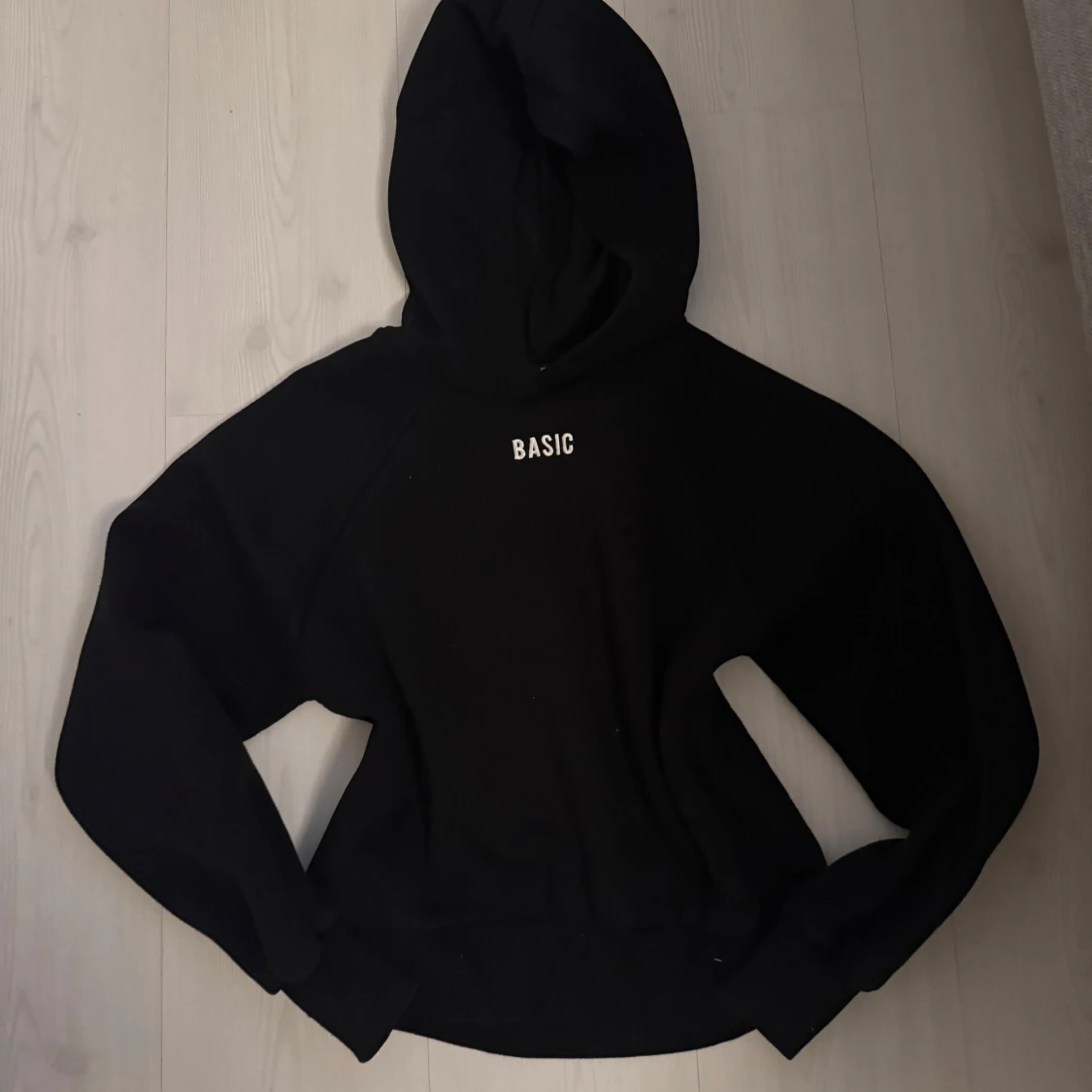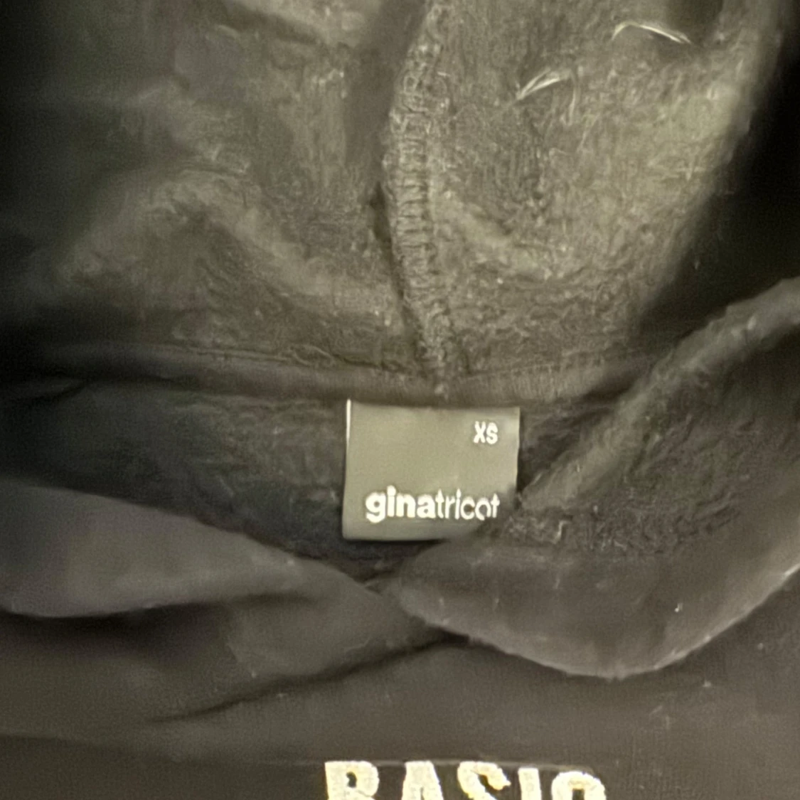 Säljer en svart hoodie från Gina Tricot med texten basic 💕