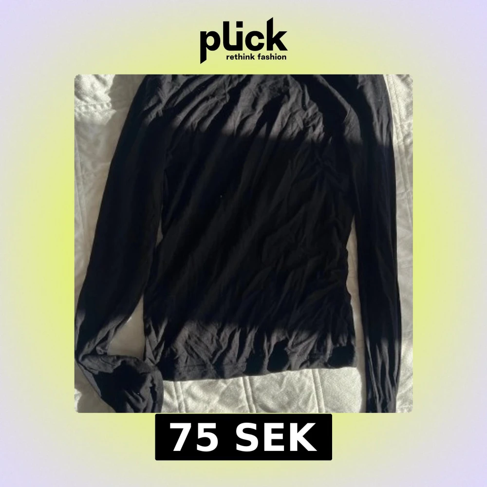 En svart långärmad tröja från Gina Tricot i storlek XS. Enkel och stilren modell i mjuk bomull, perfekt att matcha med jeans eller kjol. Sitter tajt mot kroppen och har rund halsringning.