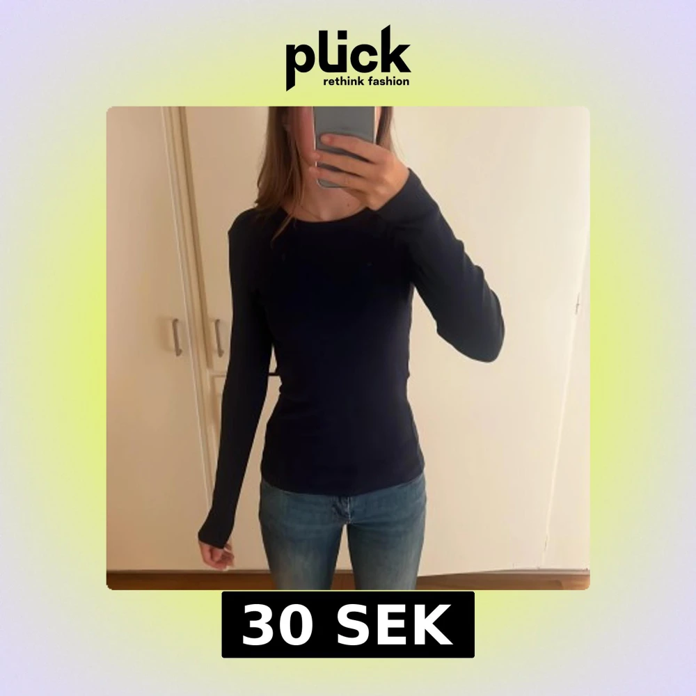 Enkel och stilren mörkblå långärmad tröja i mjuk bomull. Tröjan har en tight passform och rund halsringning, perfekt att matcha med jeans eller kjol för en clean look.