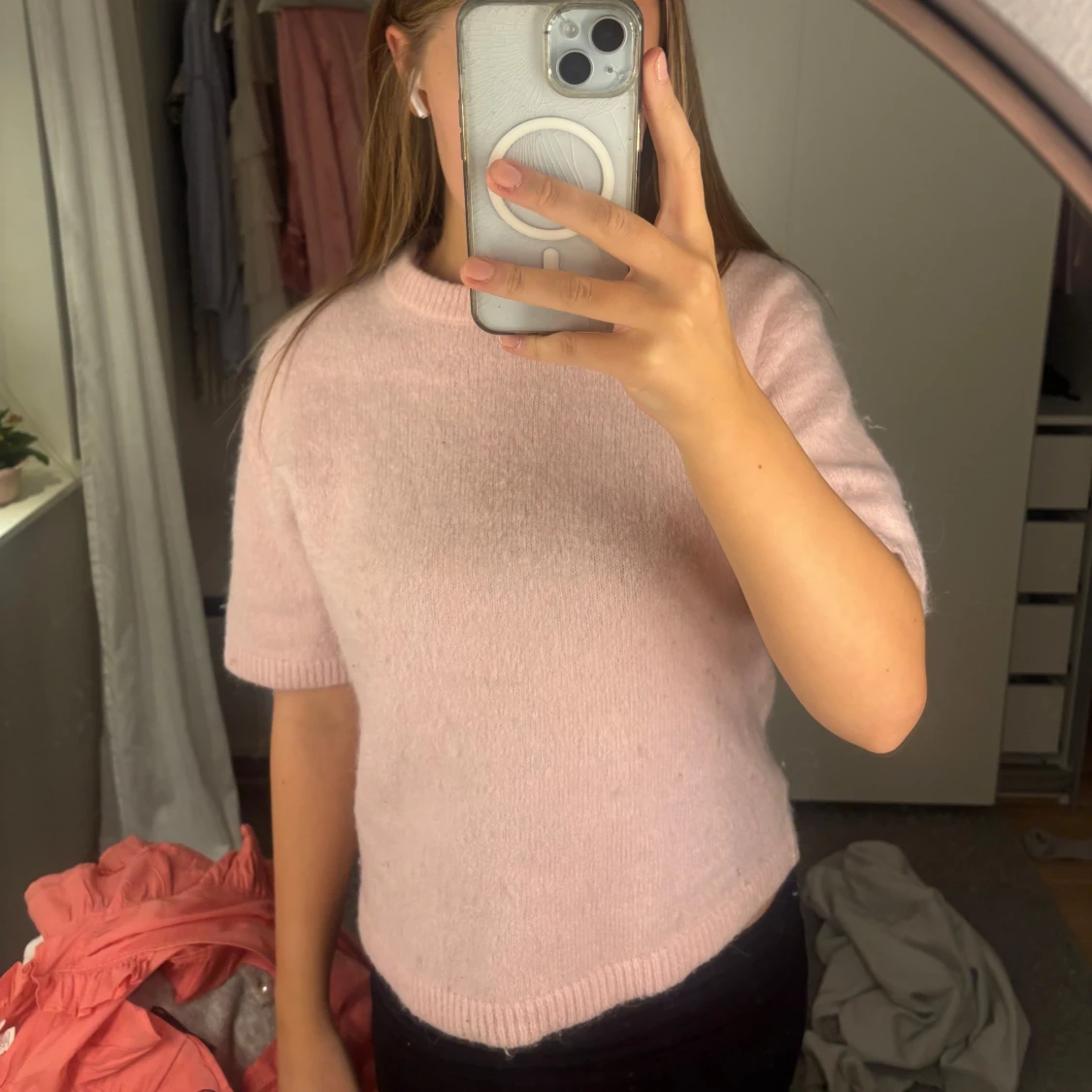 Supermjuk ljusrosa stickad tröja från Gina Tricot i kortärmad modell. Tröjan har rund halsringning och ribbade kanter, perfekt för lager-på-lager eller som den är. Enkel och stilren design som är lätt att matcha.