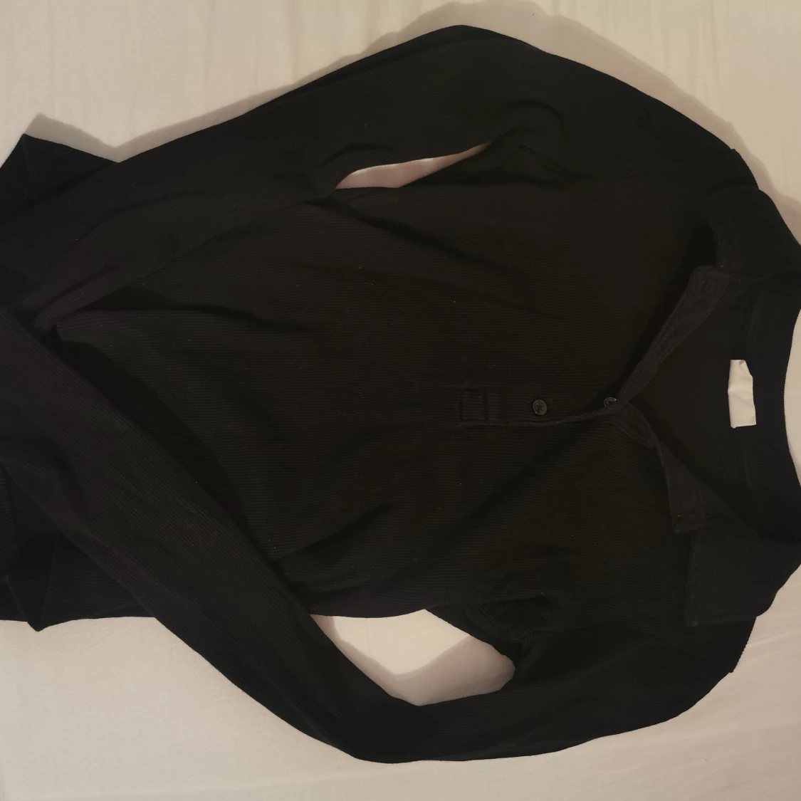 Svart långärmad pikétröja med ribbad struktur och klassisk krage. Tröjan har knappar framtill och är perfekt för en stilren och enkel look. Passar dig som gillar minimalistiska plagg med en clean vibe.