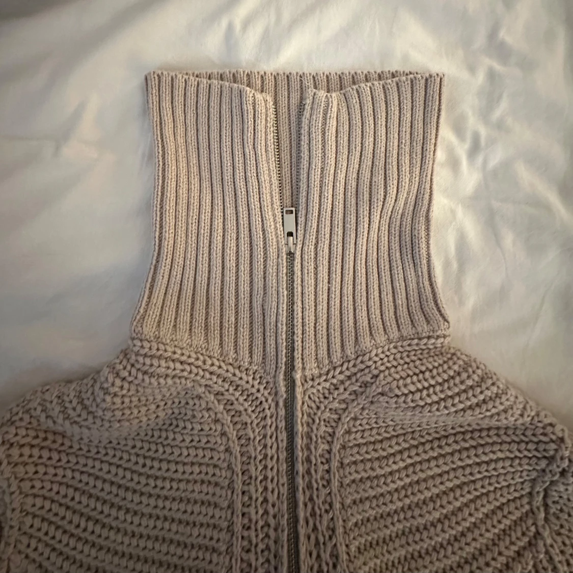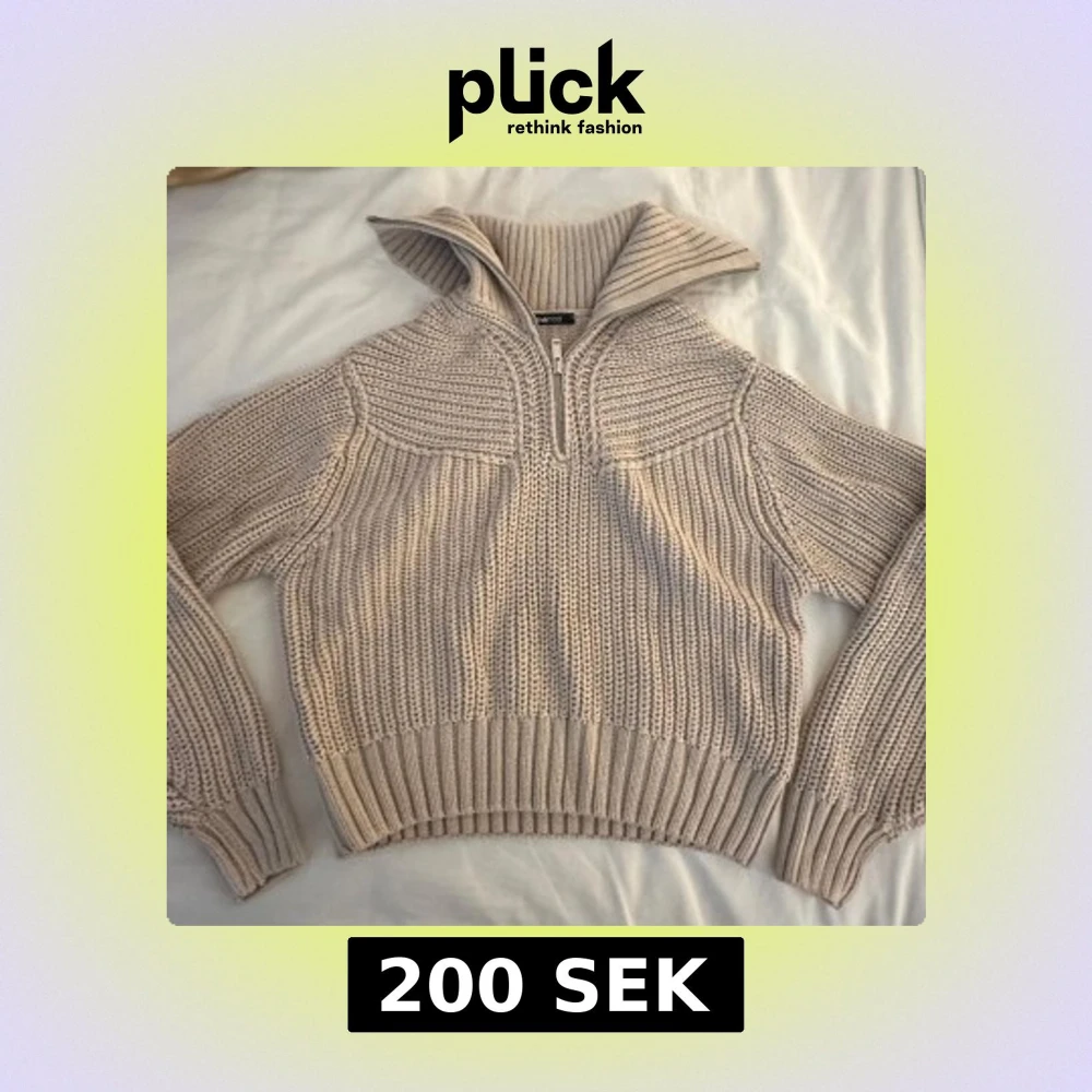 Säljer en chunky beige stickad tröja från Gina Tricot med half zip och hög krage. Tröjan har breda ribbade muddar och lång ärm, perfekt för lager på lager. Mysig att bära under kyliga dagar. Mycket bra skick, sällan använd. (FRAKT INGÅR EJ)