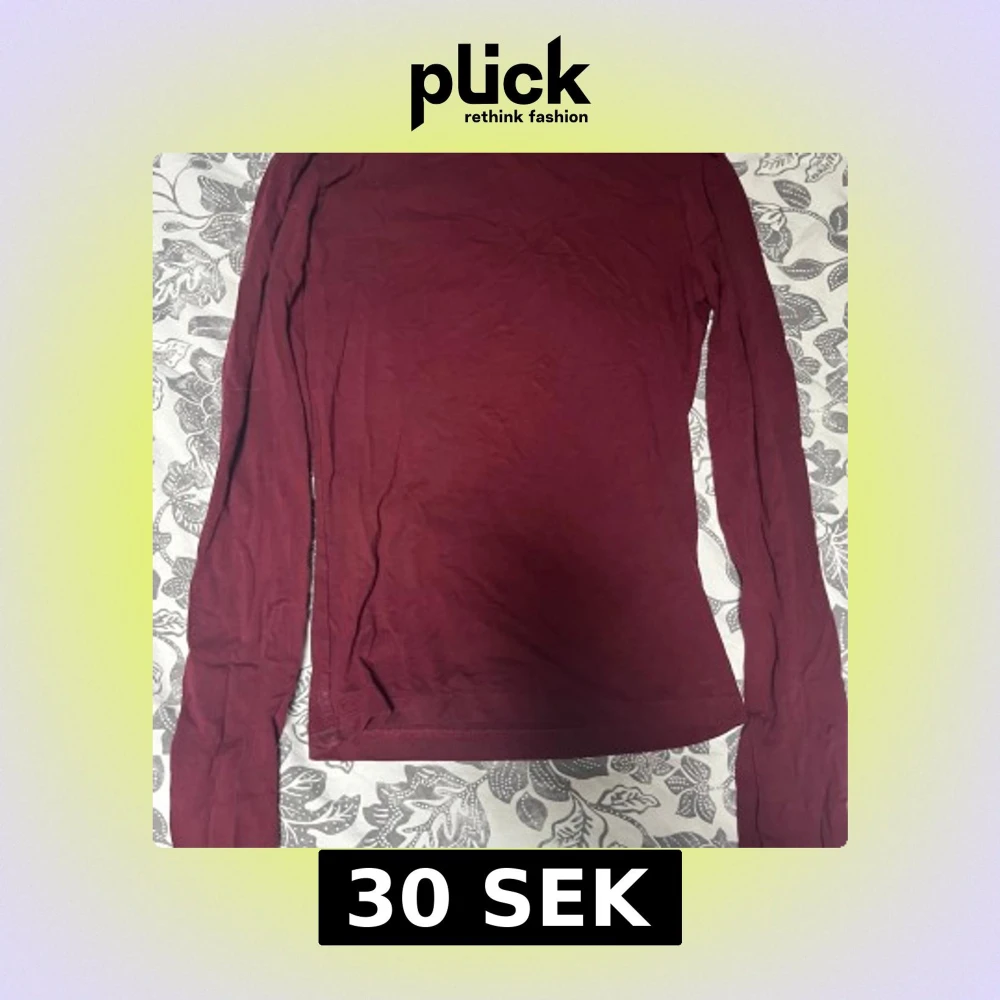 En basic vinröd långärmad tröja från Gina Tricot i storlek XS. Tröjan har rund halsringning och är gjord i mjuk bomull, perfekt att styla med jeans eller kjol. Enkel och stilren modell utan mönster eller detaljer.