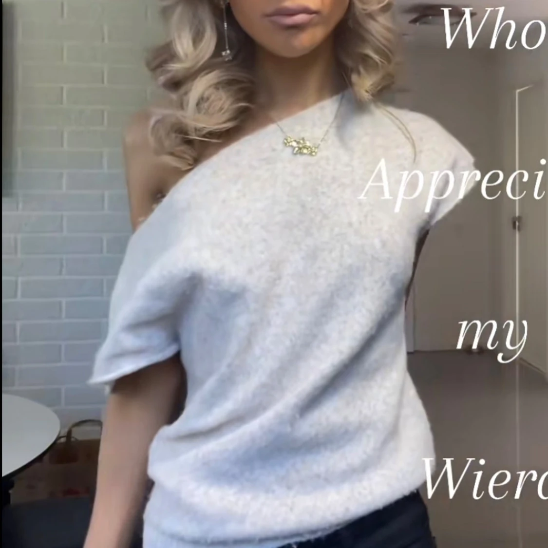 Söker en snygg ljusgrå stickad tröja med offshoulder-design från Gina Tricot