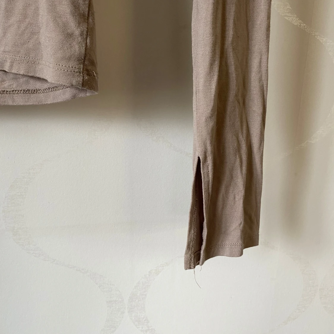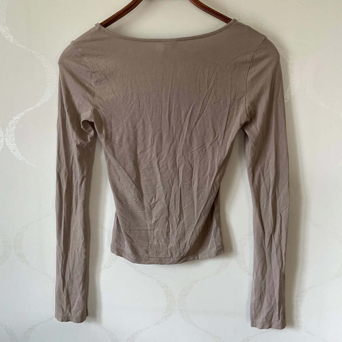 Säljer en stilren beige långärmad topp från Gina Tricot. Toppen har en rundad halsringning och är tillverkad i ett mjukt material som ger en skön passform. Perfekt för en enkel och snygg look. Hör av dig vid intresse! 😊