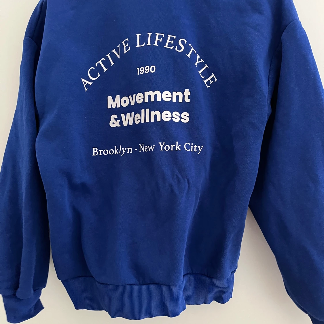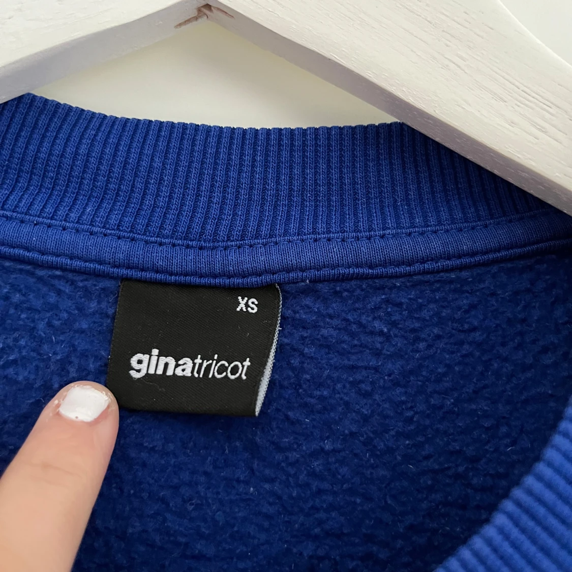 Säljer en snygg blå sweatshirt från Gina Tricot. Köpt för ca 2 år sen men inte använd mycket alls så inga defekter.