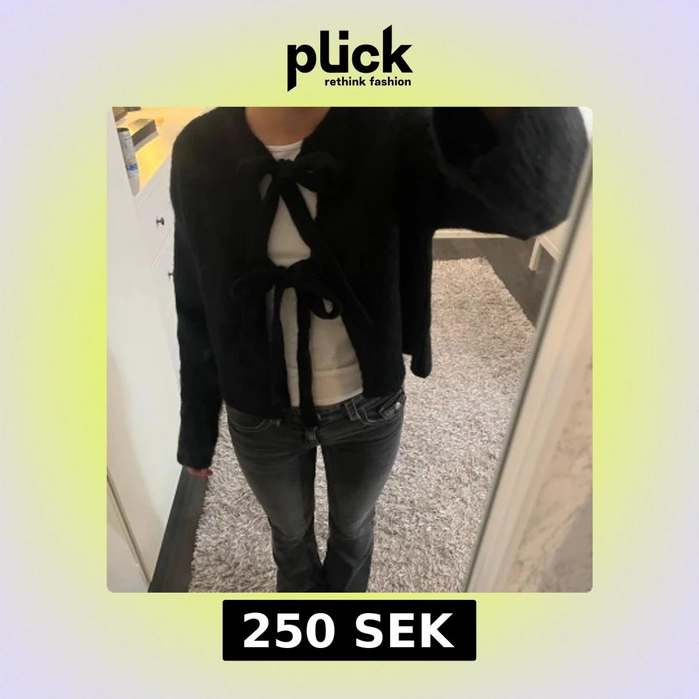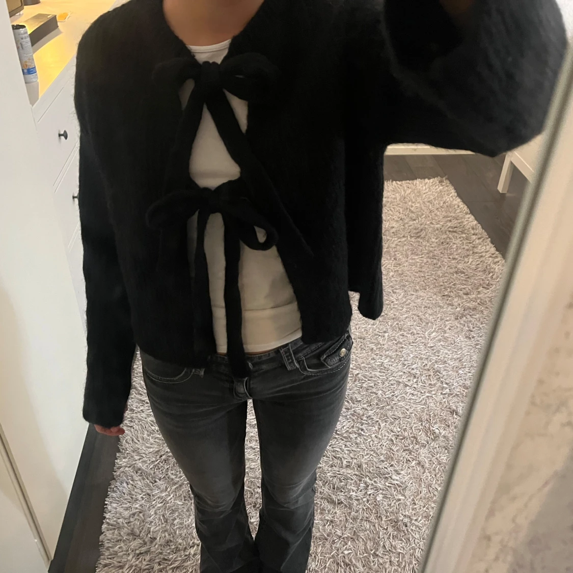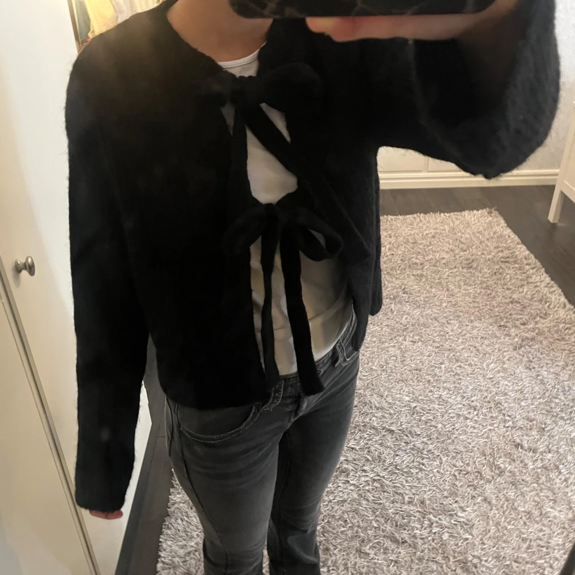 Söt svart kofta från Gina med knyt framtill, perfekt för en stilren look. Koftan är i nyskick är använd 1 gång skick 10/10. Storlek xs men skulle säga att den även passar S💕Köpt för 400kr💕