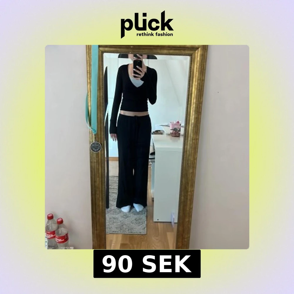 Säljer en svart långärmad topp från Gina Tricot med snygg v-ringning och figurnära passform. Perfekt att styla med jeans eller kjol. Materialet är mjukt och stretchigt, vilket gör den bekväm att bära hela dagen. Som ny, bara använd några gånger 💕