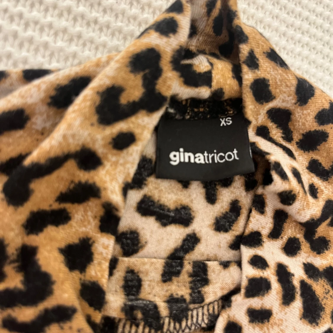 Säljer en slim leopardmönstrad långärmad topp från Gina Tricot i beige och svart. Sitter tight mot kroppen och super skönt material💗💗