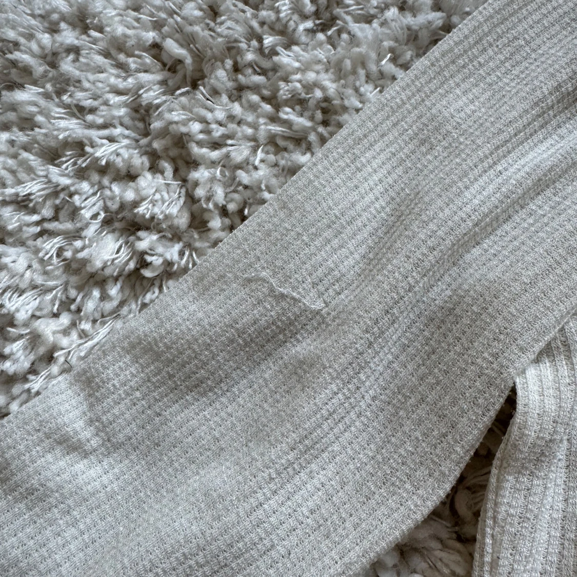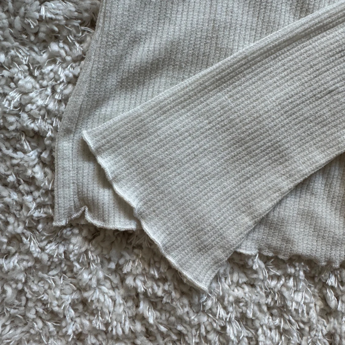 Supermjuk och ribbad långärmad tröja från Gina Tricot i ljusvit färg, mesh typ för man ser igenom. Tröjan har en slim passform, diskret vågig kant nertill och vid ärmslut. Perfekt att styla med jeans eller kjol för en clean look.