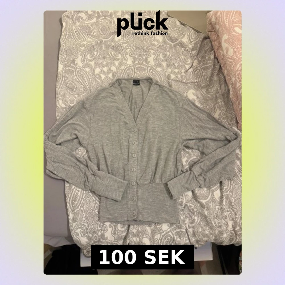Snygg grå kofta från Gina Tricot i storlek XS. Koftan har v-ringning, långa ärmar och knappar hela vägen framtill. Mjuk och skön i bomullsmaterial, perfekt att slänga på sig när det är lite kyligt ute.