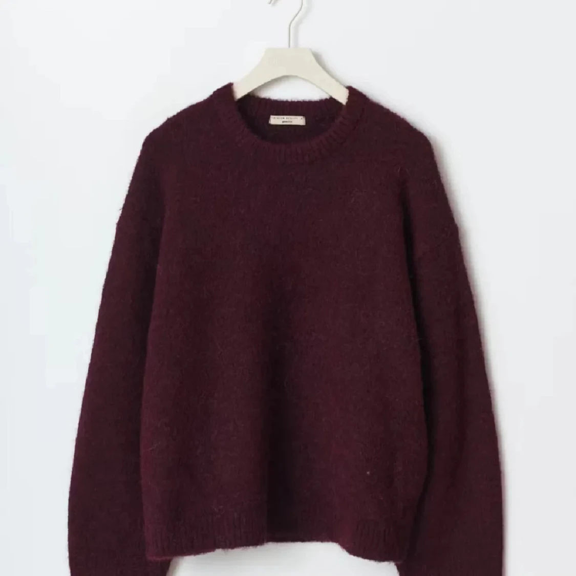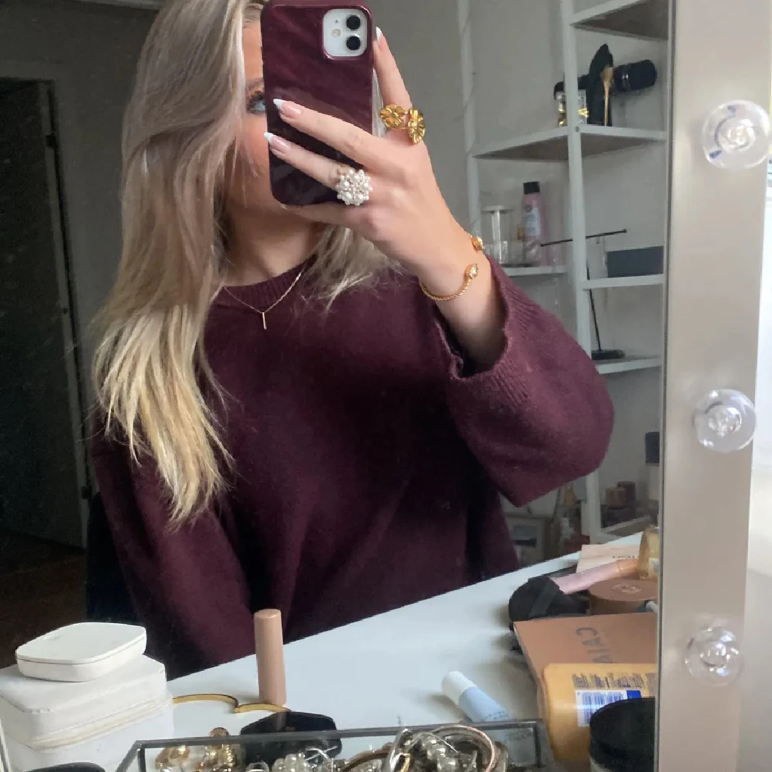 Mysig vinröd stickad tröja från Gina Tricot med rund halsringning och långa ärmar. Tröjan har en loose passform och ribbade muddar vid ärmslut och nederkant. Perfekt för lager-på-lager under kyliga dagar.