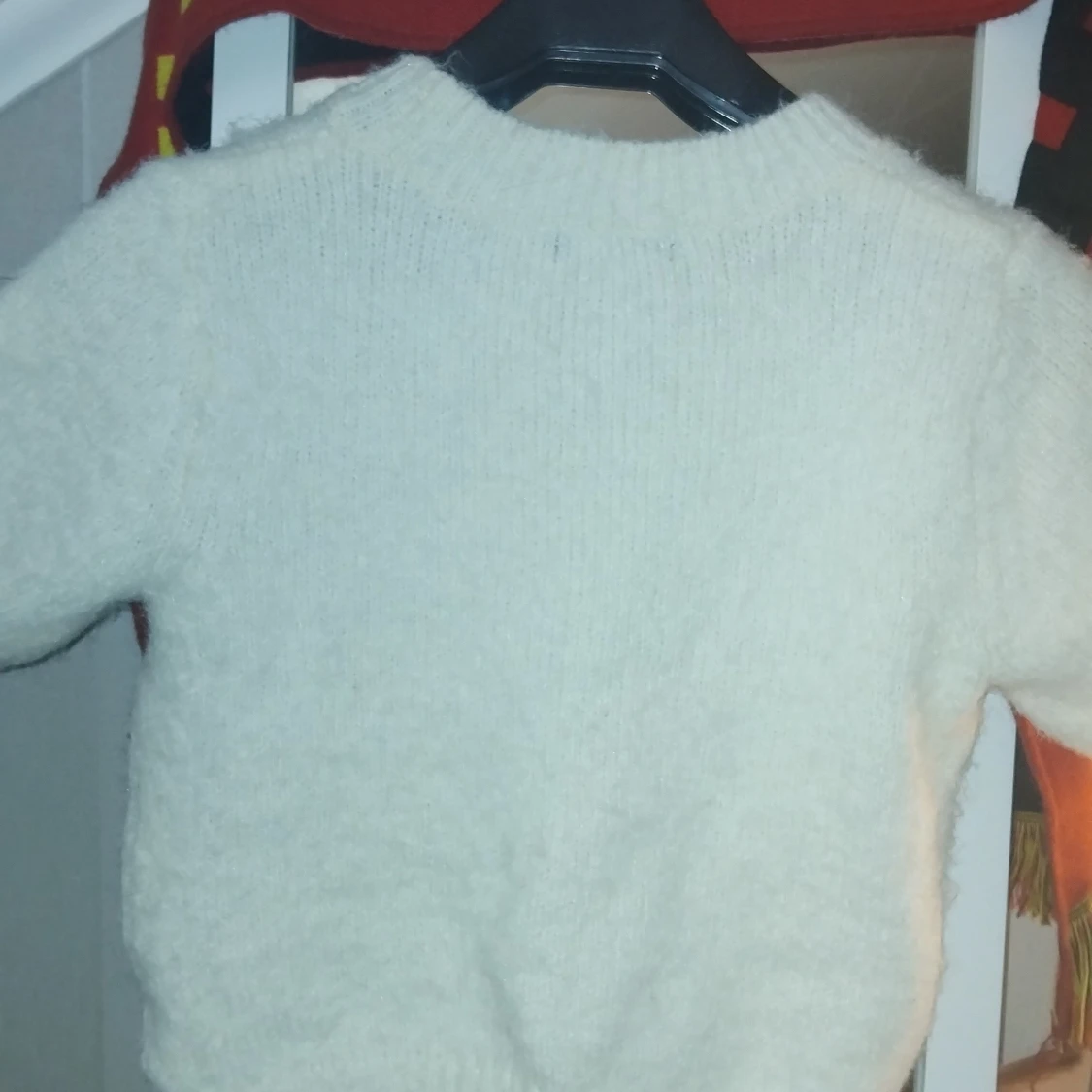 Supermysig vit stickad tröja från Gina Tricot i storlek XS. Tröjan har korta ärmar, rund halsringning och är fluffig i materialet. Perfekt för lager-på-lager och passar till allt. Enkel och stilren design som är lätt att matcha.