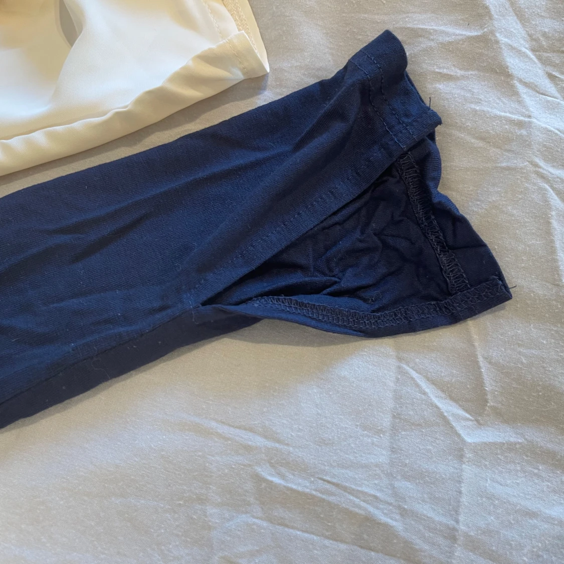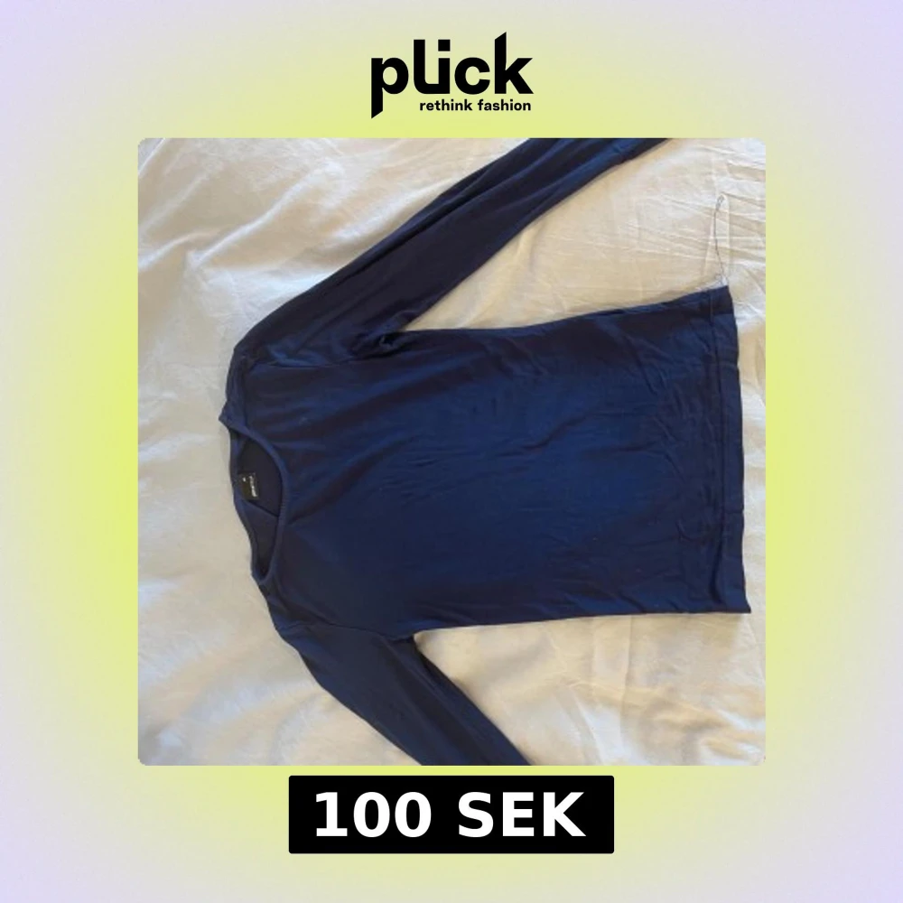 En enkel och stilren mörkblå långärmad topp från Gina med en liten slits i armarna