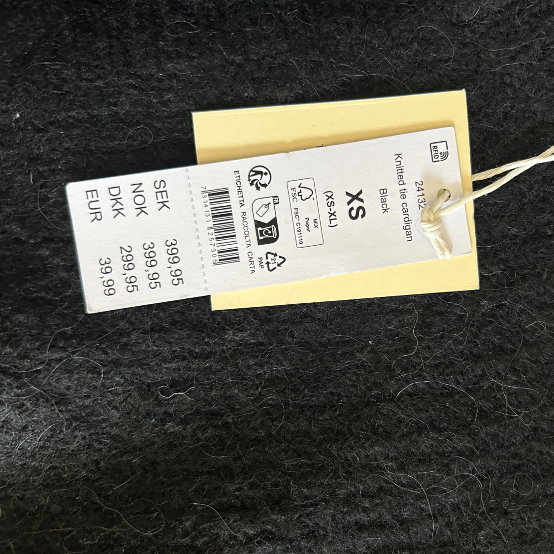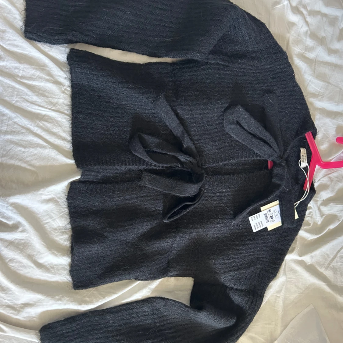 Svart stickad kofta med knytband