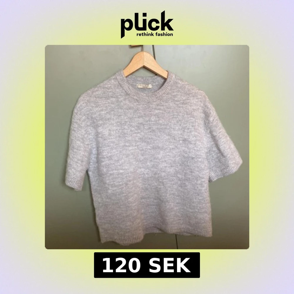 Supermjuk ljusgrå stickad tröja från Gina tricot med korta ärmar och rund halsringning. Perfekt för lager-på-lager och enkel att styla till olika outfits. Ribbstickade kanter vid ärmslut och nederkant.