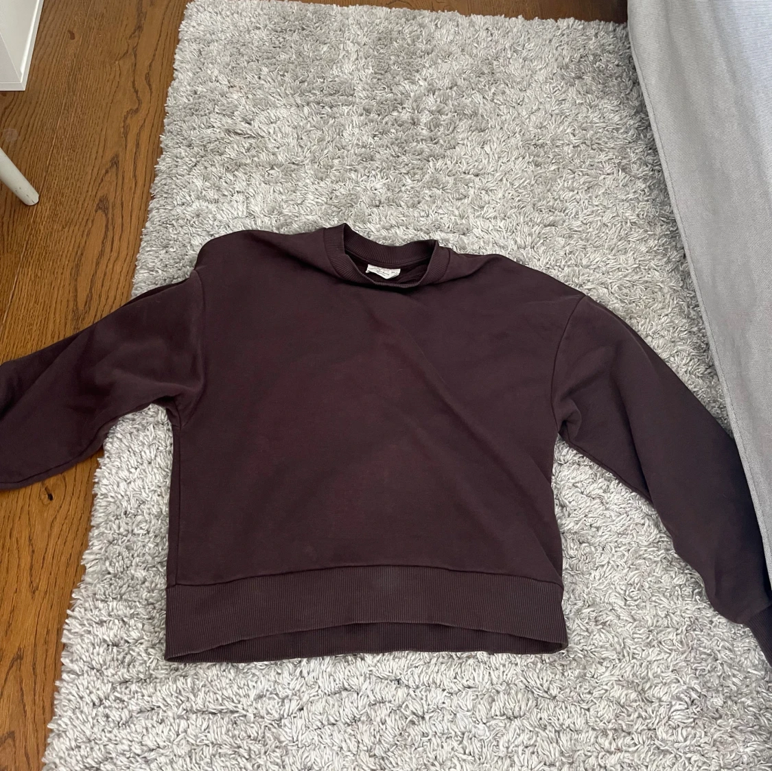 Mysig brun sweatshirt från Gina Tricot i storlek XXS. Tröjan har en klassisk rund halsringning, ribbade muddar och är tillverkad i mjuk bomullsmix. Perfekt för chill dagar och enkel att matcha med jeans eller mjukisbyxor.