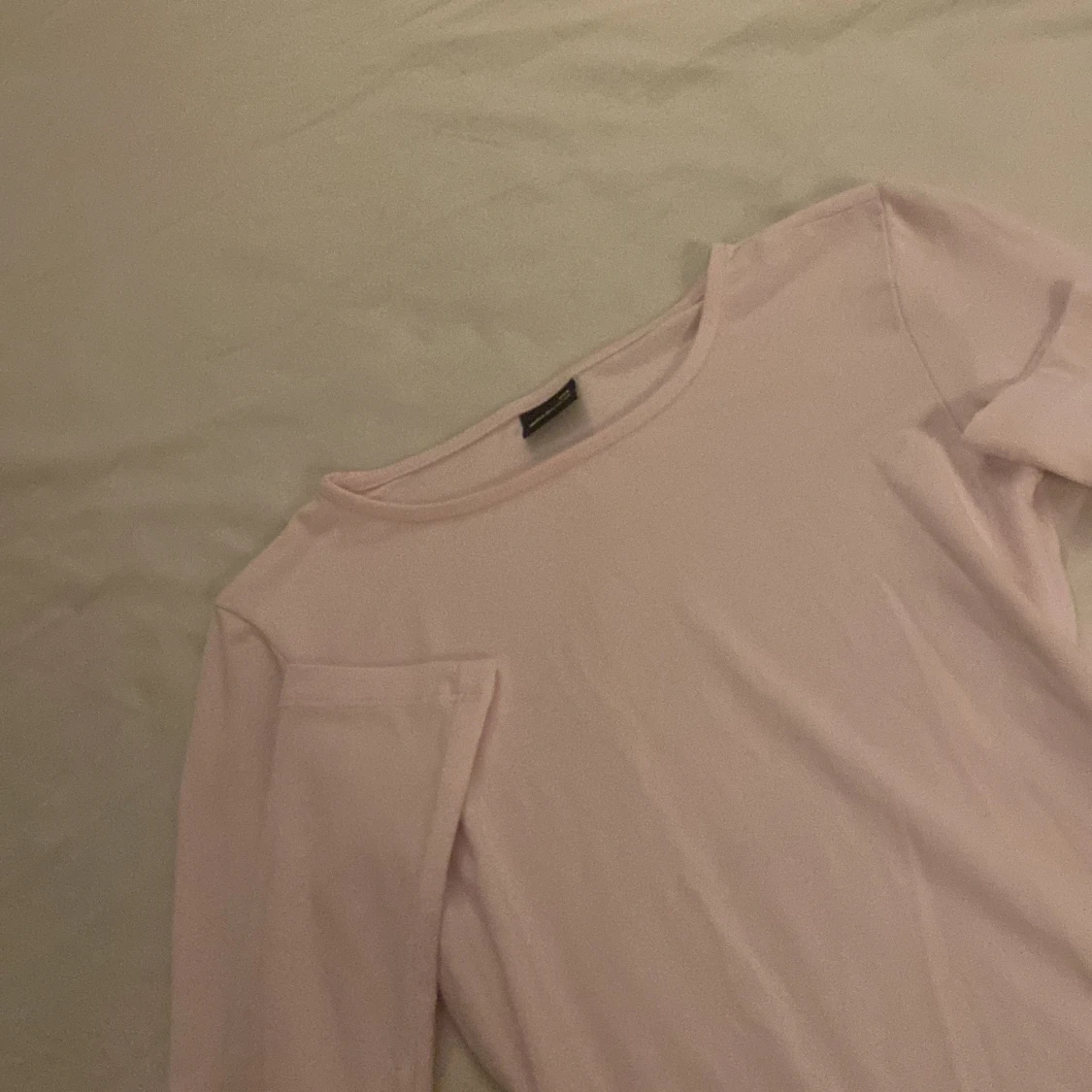 Säljer en stilren ljusrosa långärmad topp. Perfekt för en enkel och elegant look. Toppen har en rund halsringning och är gjord i ett mjukt material som känns skönt mot huden. Tröjan är lite skrynklig men kan bara tvättas eller strykas så försvinner det. Pris kan diskuteras!