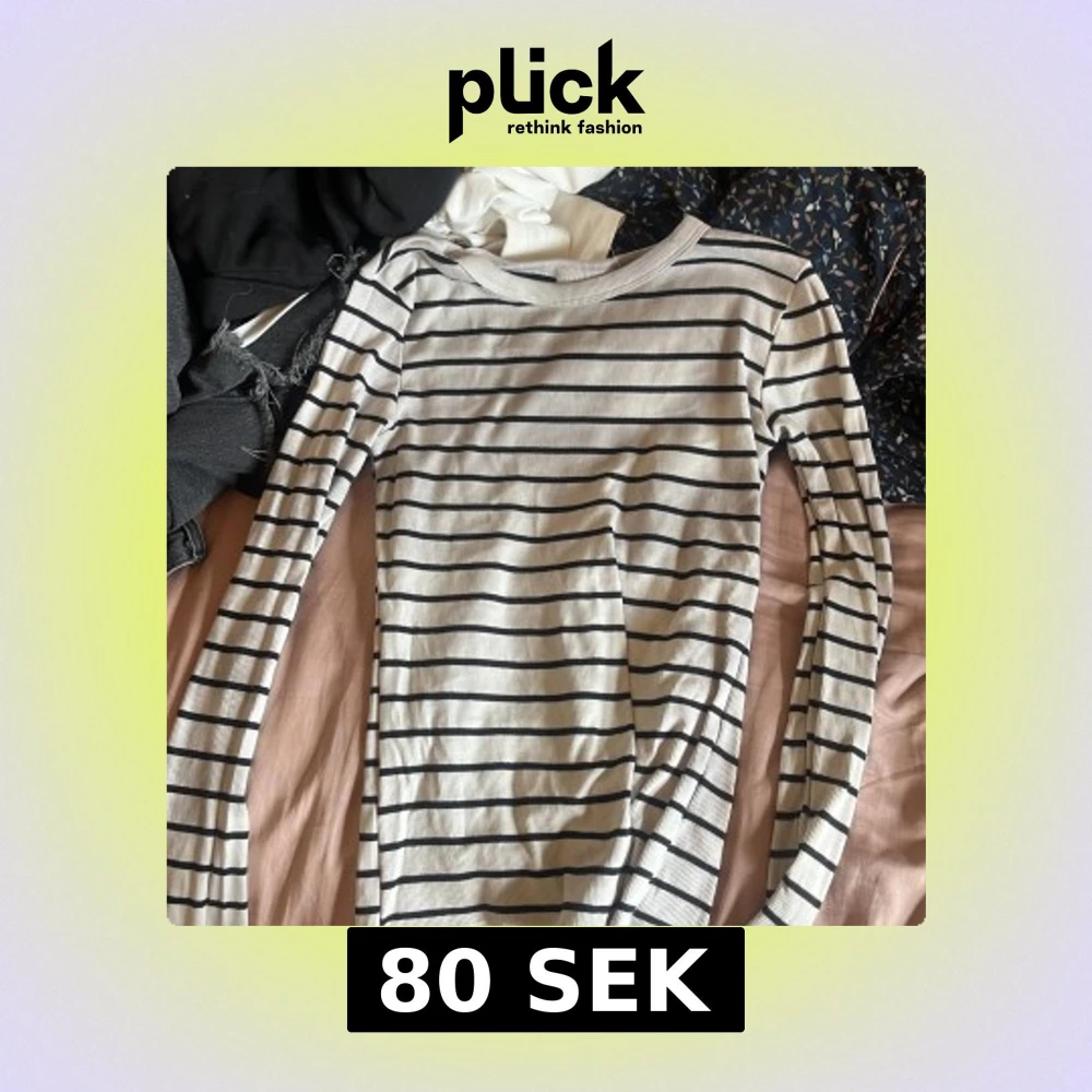 Superskön långärmad tröja från Gina Tricot i vitt med svarta horisontella ränder. Modellen är tight och har rund halsringning. Perfekt basic-plagg att styla med jeans eller kjol. Materialet är mjukt och stretchigt, troligtvis bomullsmix.
