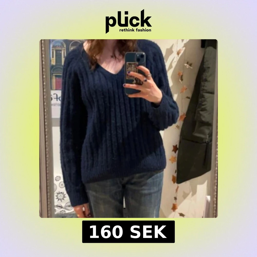 Säljer en snygg mörkblå stickad tröja från Gina Tricot. Tröjan har en v-ringad design. Använd få gånger. Kom gärna med prisförslag! 💕
