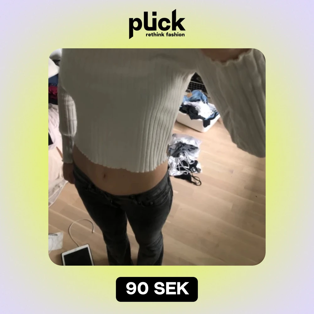 Vit, ribbad, långärmad tröja från gina tricot. Storlek M men passar S och Xs!