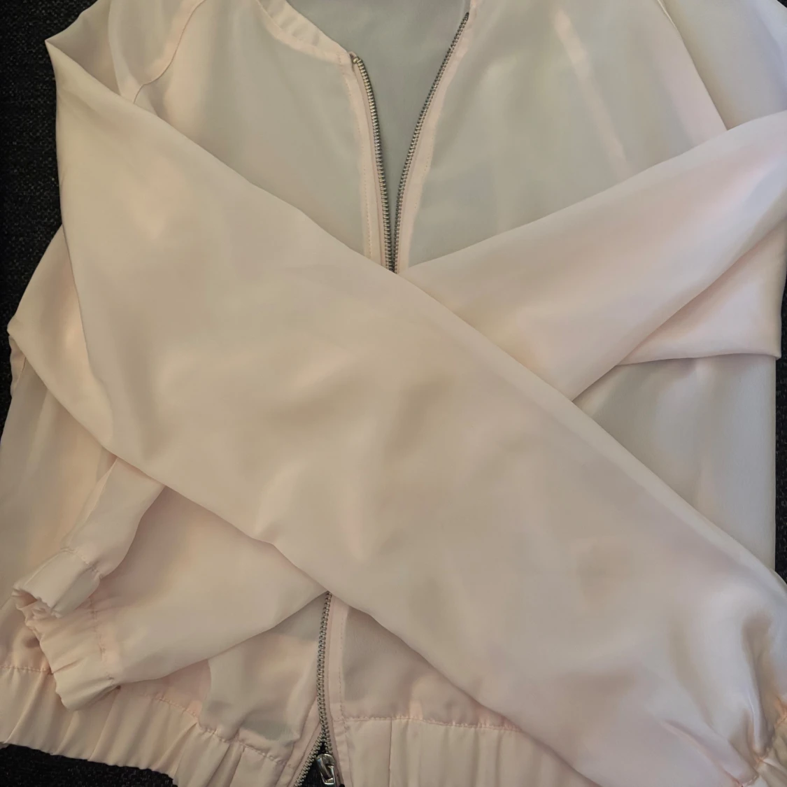 Säljer en ljusrosa bomberjacka från Gina Tricot i storlek 38. Jackan har dragkedja framtill, resår vid ärmslut och midja samt en stilren, enkel design. Perfekt för dig som gillar en clean look.