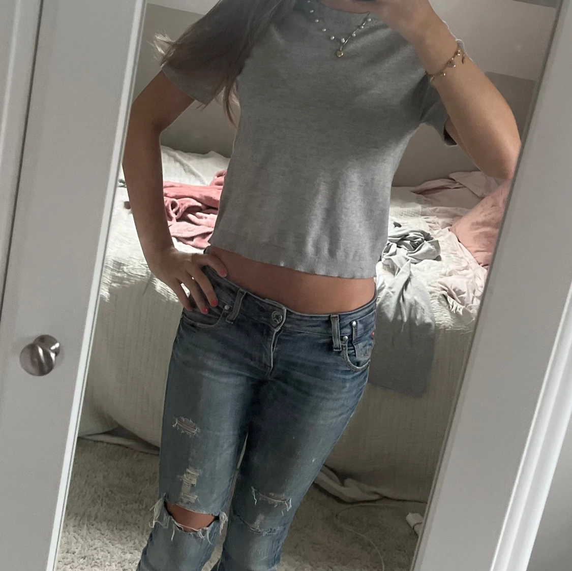 Super fin grå stickad t-skirt. Helt ny,aldrig använd. Säljer då den tyvärr inte kommer till användning. Storlek xs. Skriv privat för fler frågor/bilder