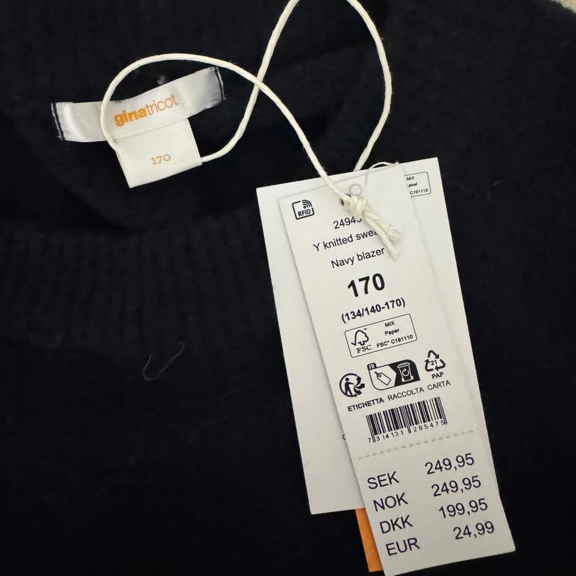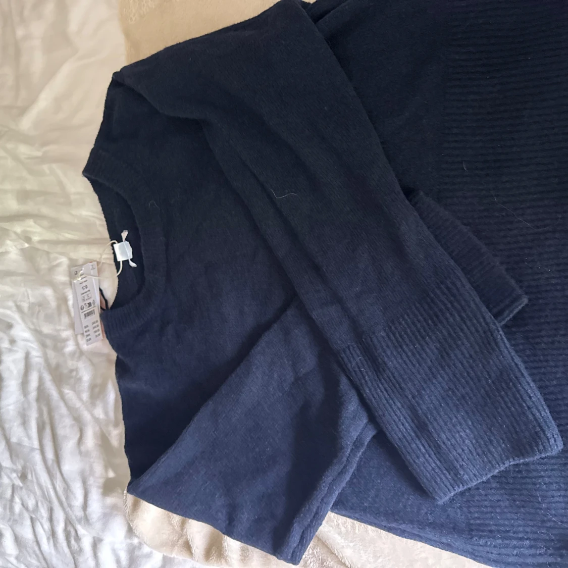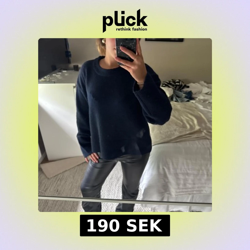 Säljer en mörkblå stickad tröja från Gina Tricot. Säljer då jag köpte 2 stycken och inte hade tid att lämna tillbaka den ena. 💕den är aldrig använd utan endast testad