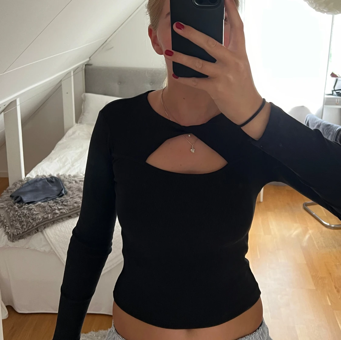 Snygg svart långärmad tröja med detalj fram! Aldrig använd, och lappen sitter kvar!