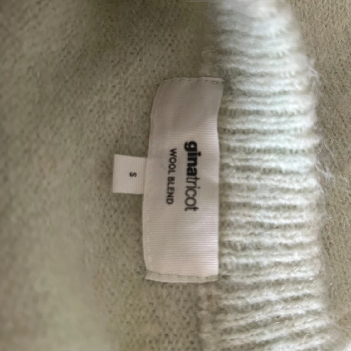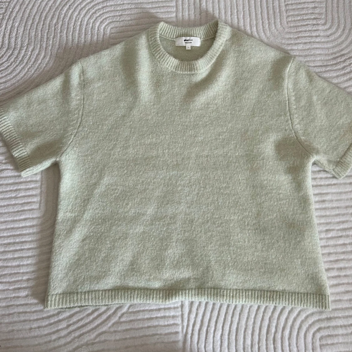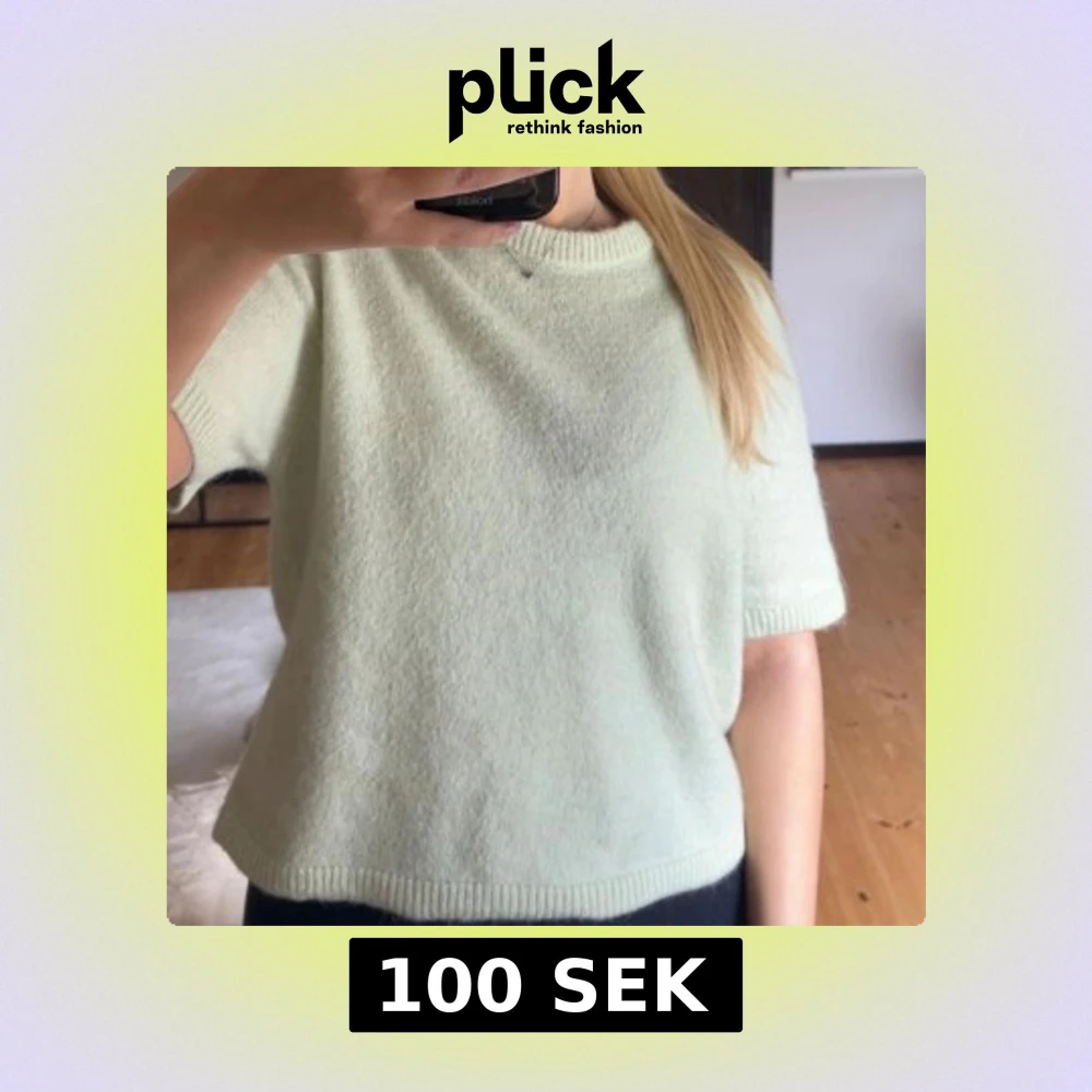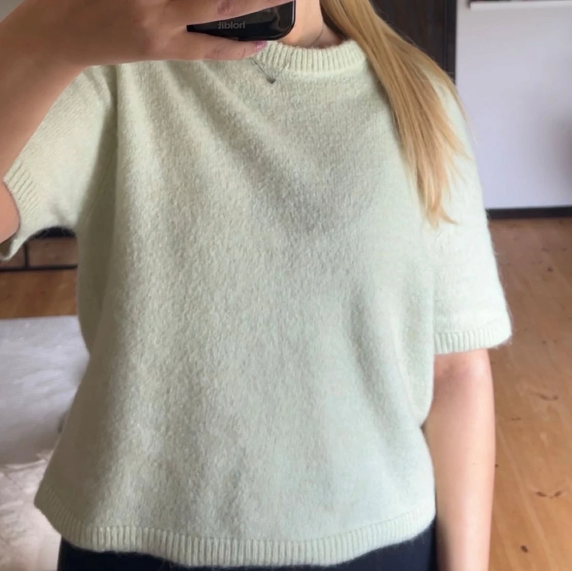 Ljusgrön stickad tröja från Gina Tricot. Tröjan har korta ärmar och säljer pga att den aldrig kommit till användning🤍