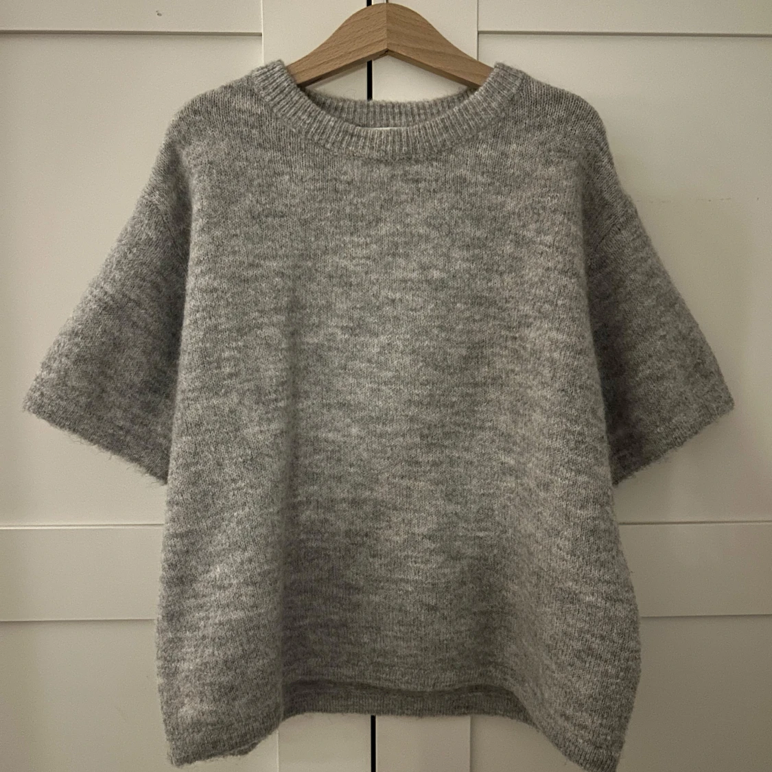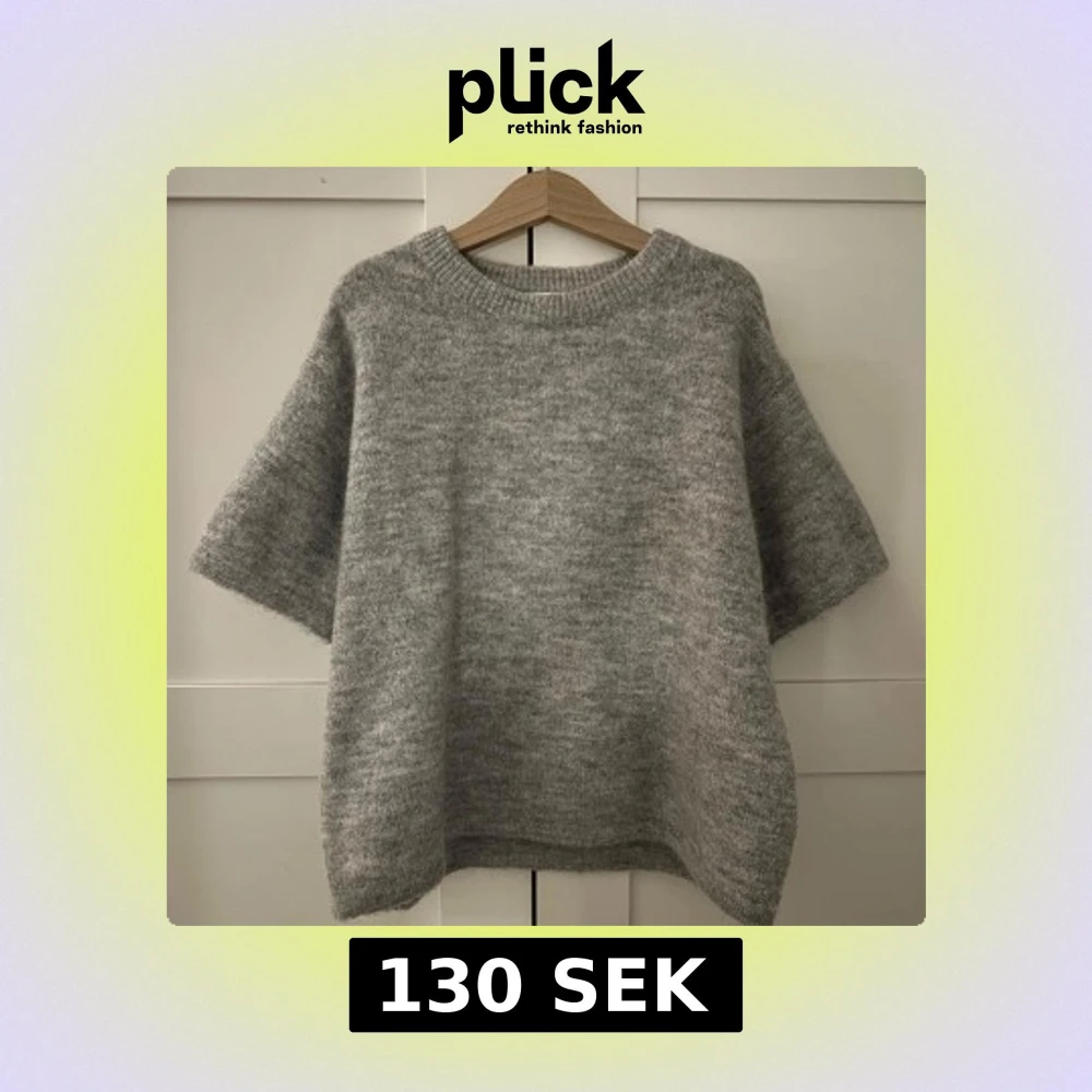 Mysig grå stickad tröja från Gina Tricot med korta ärmar och rund halsringning. Tröjan har en loose passform. Enkel och stilren design som funkar till många outfits. Helt ny men bortklippt prislapp! Aldrig använd och inte nopprig💞