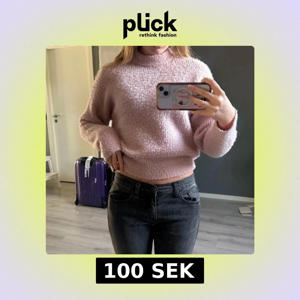 Supermysig ljusrosa stickad tröja från Gina Tricot med hög hals och lång ärm.
