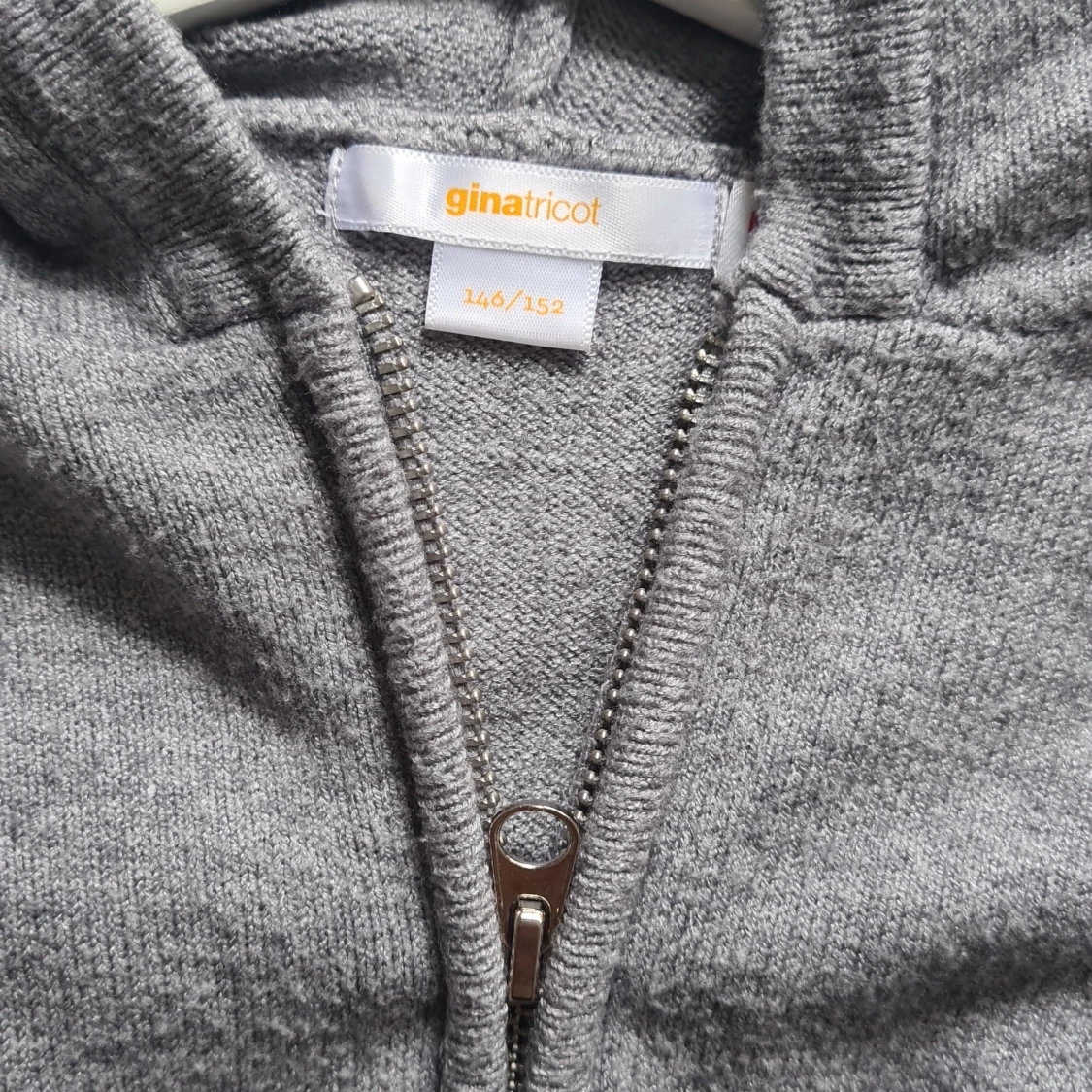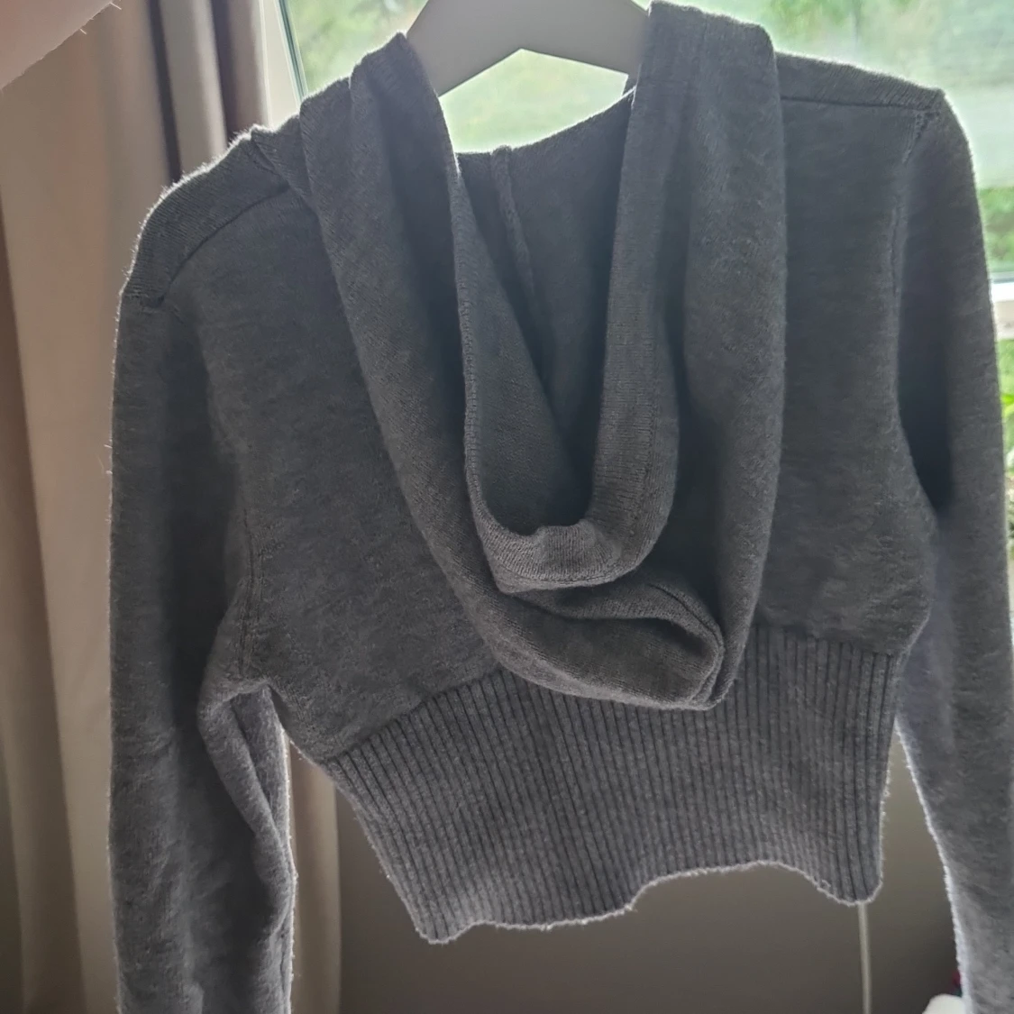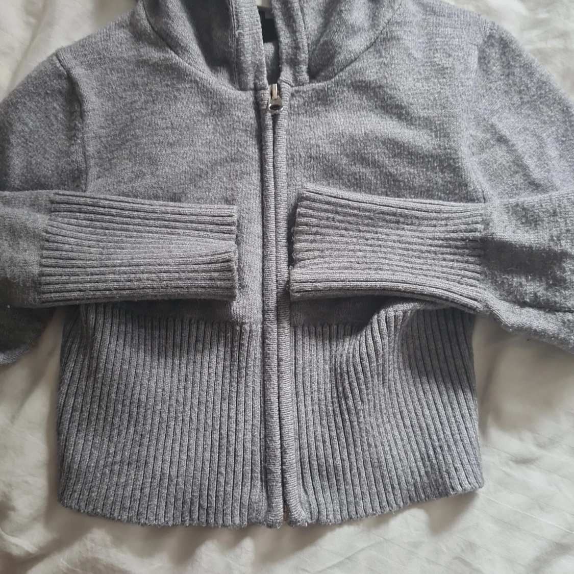 Mysig grå hoodie från Gina Tricot med dragkedja framtill och huva🩷Tröjan är stickad med bred ribbad kant nedtill och vid ärmsluten, vilket ger en snygg och trendig look. Super skönt material och bara använt cirka 5 gånger🩷